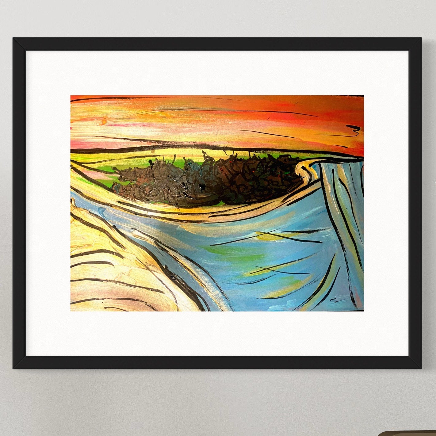Pink metallic sky and metallic aqua river, the work will change personality based on lighting and time of day.
