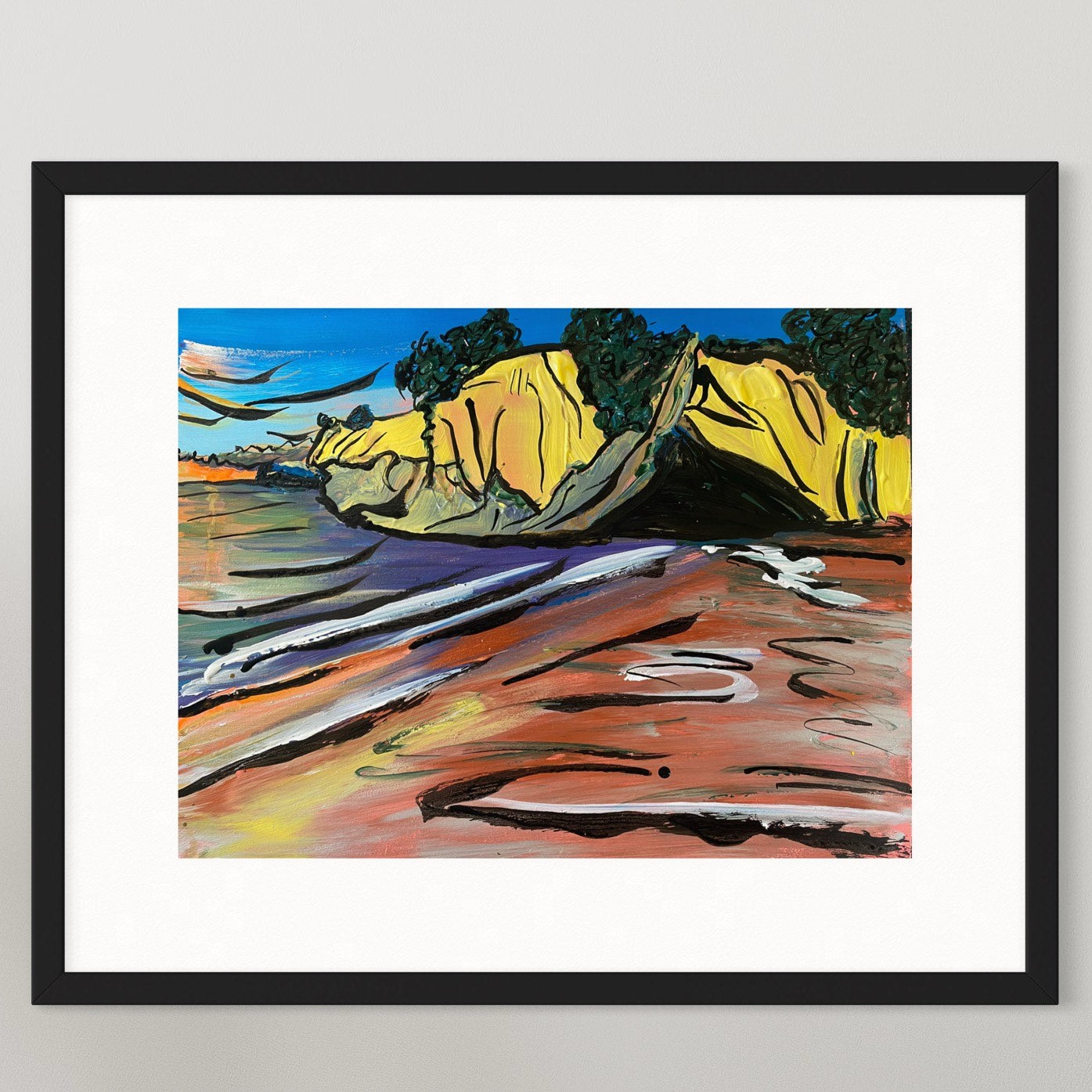 Metallic rose gold beach, paired with Indian ink, the work will change personality based on lighting and time of day.